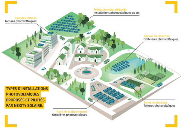 Réaffirmant les engagements environnementaux et énergétiques du groupe Nexity et sa place de partenaire privilégié des territoires, Nexity Solaire s’appuie sur l’expertise du Groupe pour aider ses clients à solariser leurs actifs immobiliers, bâtis ou non bâtis.